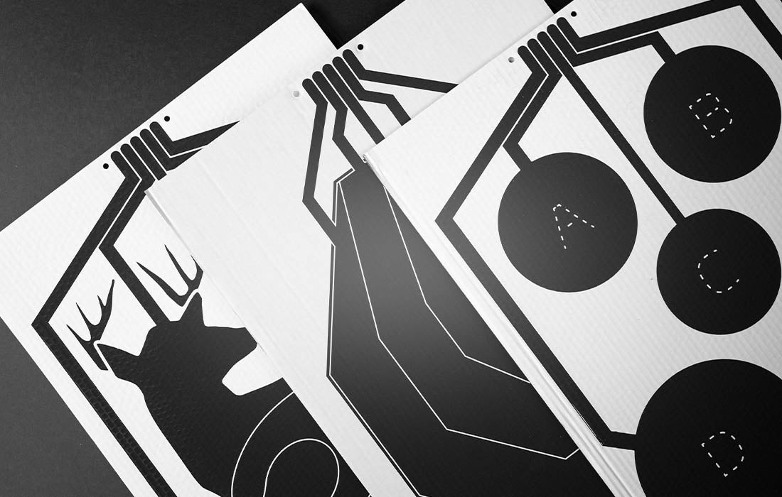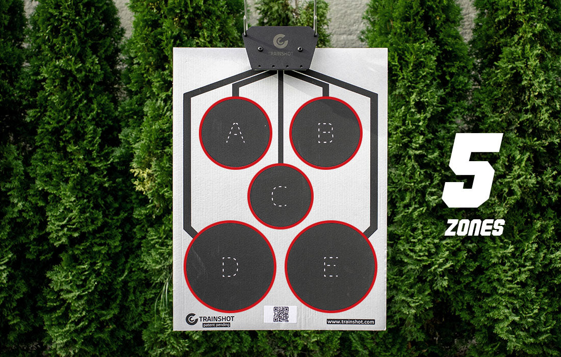 All targets have 5 detectible zones. Cardboard targets use Trainshot patent pending technology and are universal for STARTER and PRO units.
